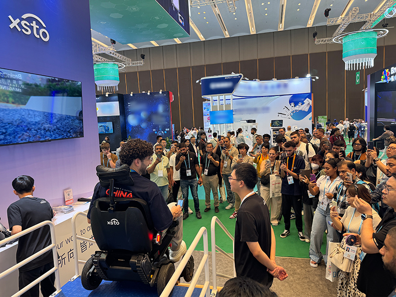 该机器人凝聚我司多年的研发积累与创新智慧,不仅能稳定应对楼梯、斜坡、崎岖路面等多种复杂地形,更通过多重安全防护和舒适陪伴功能,为行动障碍人群开启更自主、舒适、便捷的生活新方式。展会现场热烈的反响,正是对我们技术创新价值的完美印证。XSTO以科技打破地形限制,重塑美好出行和搬运体验,让每一位用户心之所向,皆成坦途Ease your way to anywhere。